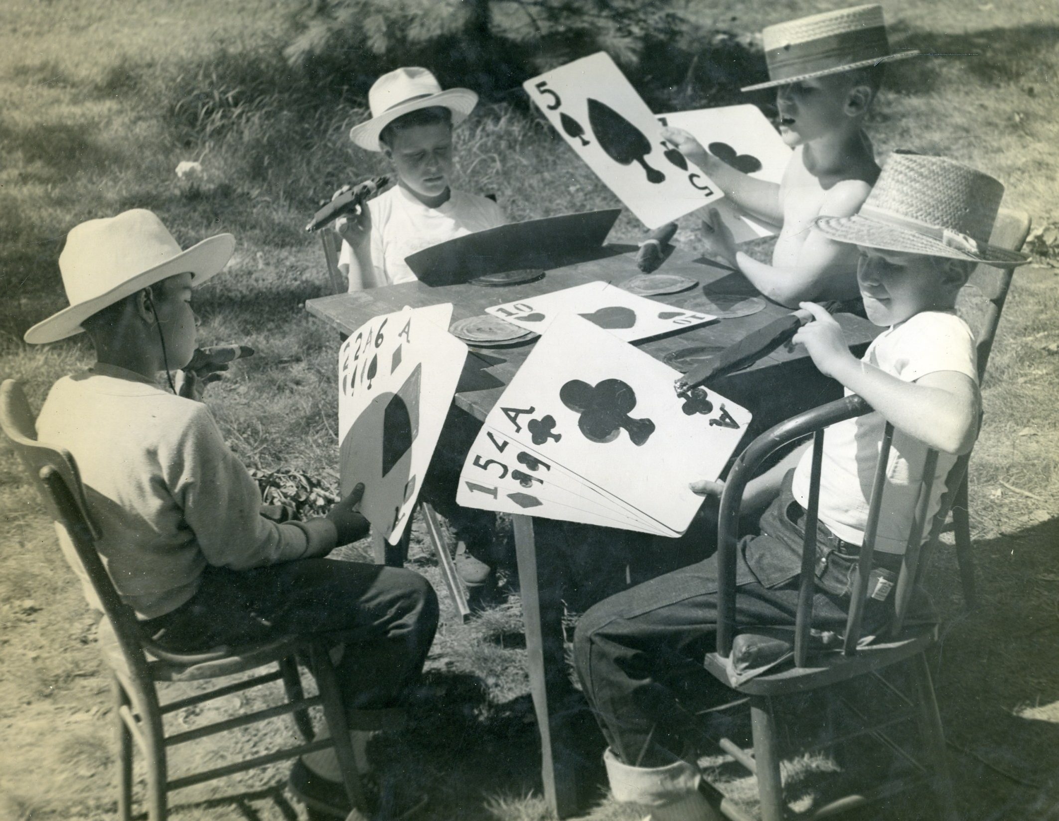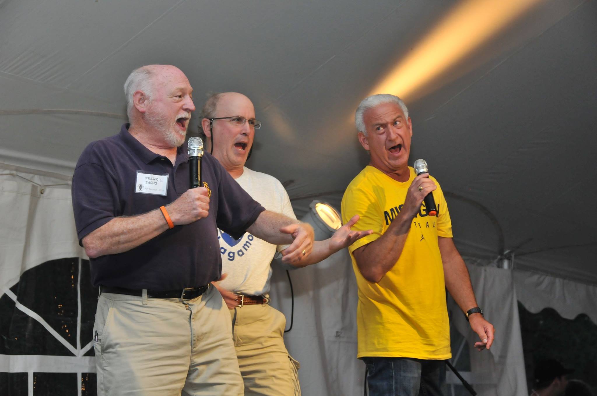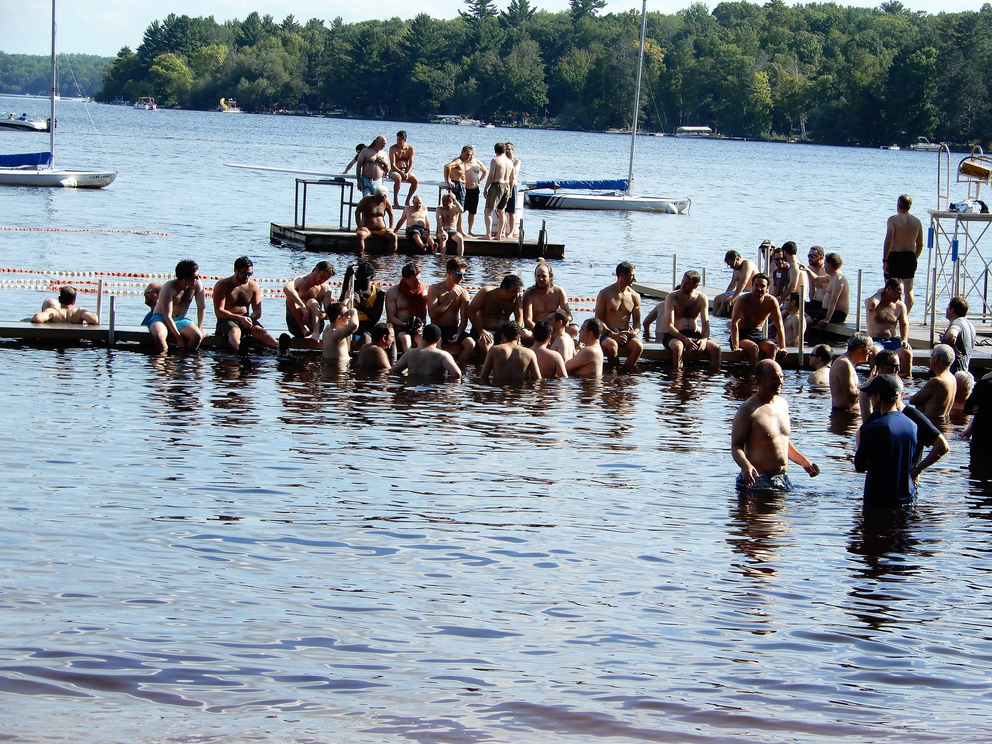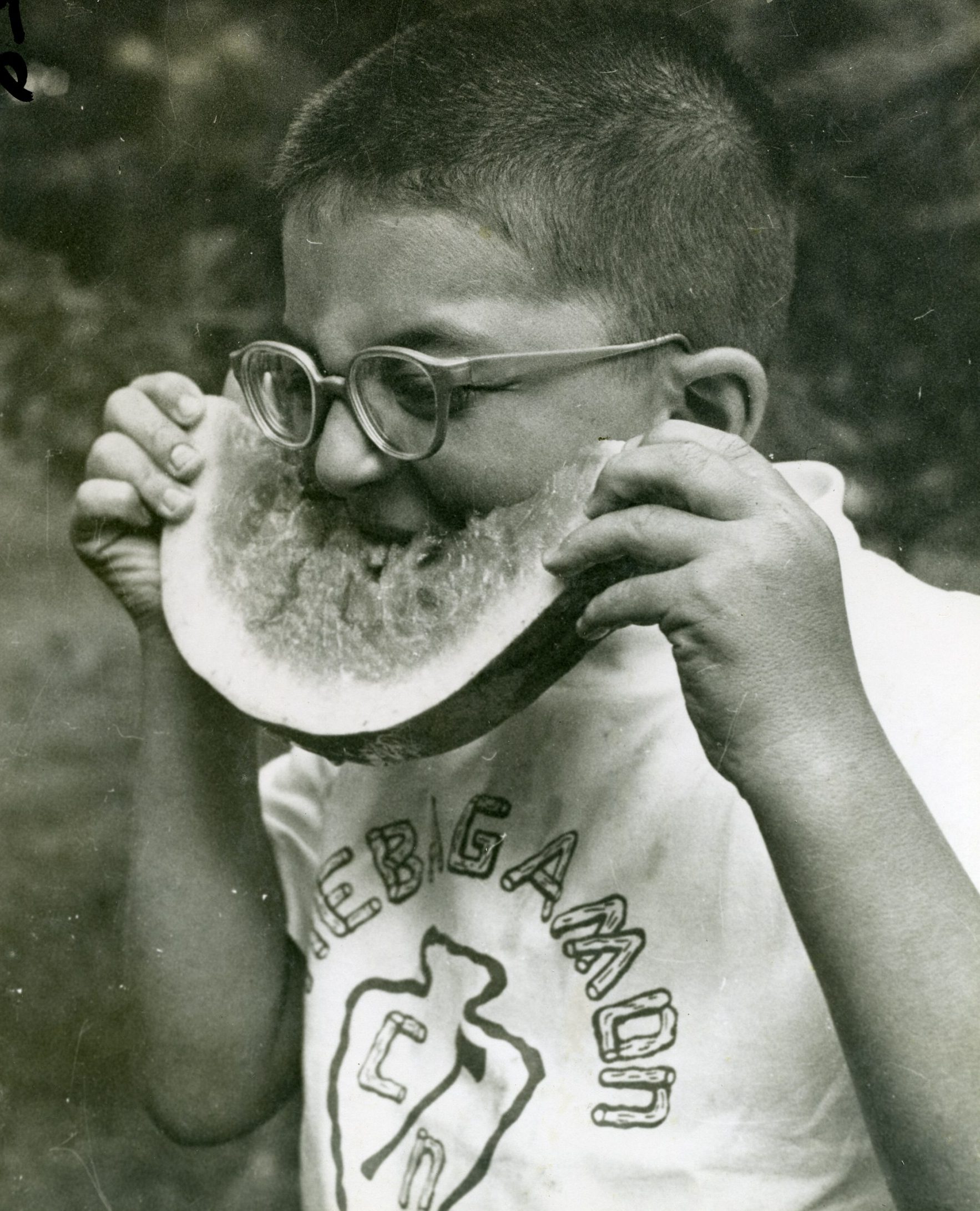 But sometimes the little things can be equally captivating and rather enlightening. Is that a cigar in the mouth of a tennis-playing staff member in 1935? A boxing match in 1945? A chalkboard, in 1959, where the Upper Diamond scoreboard now stands? The actual presentation of the Survival Big Trip poncho in 1964? Camp’s version of the Village People at the 1979 Follies? A toga on the Paul Bunyan statue in 1986? And, in 2004 at the all-camp birthday, four village directors holding cakes depicting… their four faces?