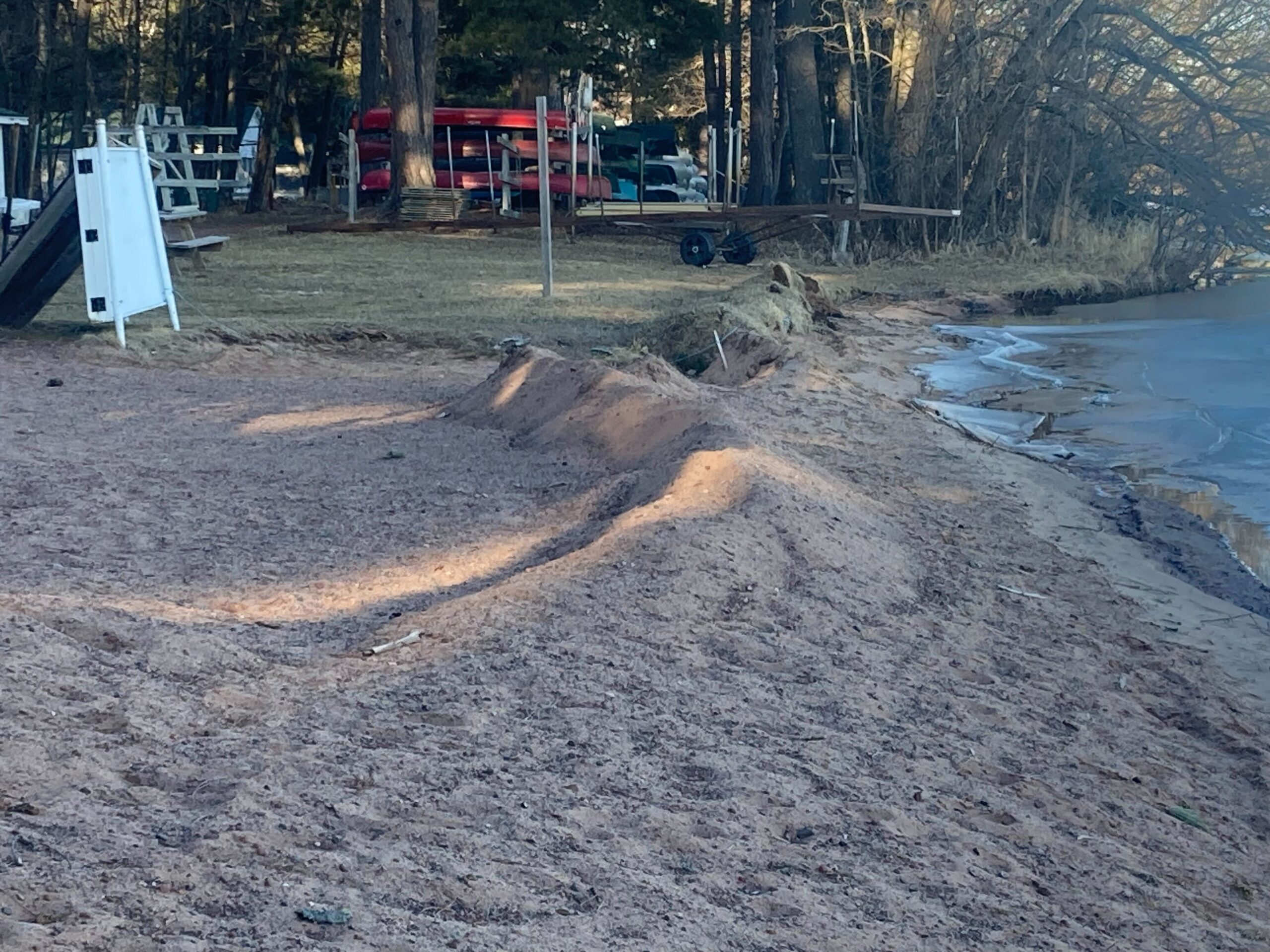 - Lake ice pushes sand up the shore and leaves it there as ice recedes